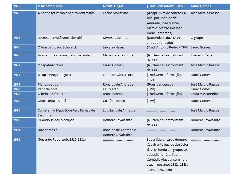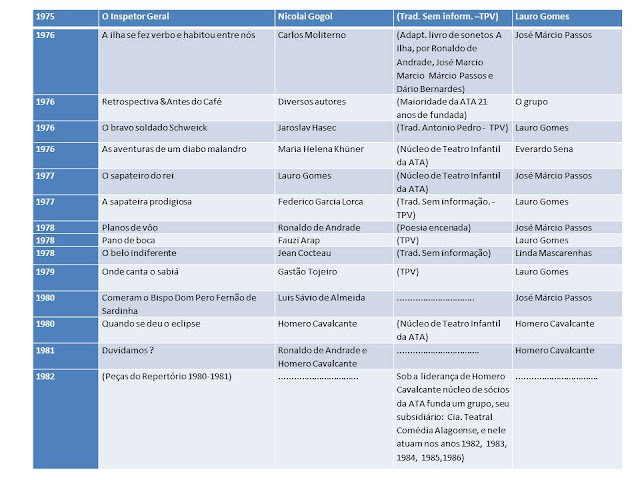 REPERTÓRIO DE PEÇAS MONTADAS PELA ATA
